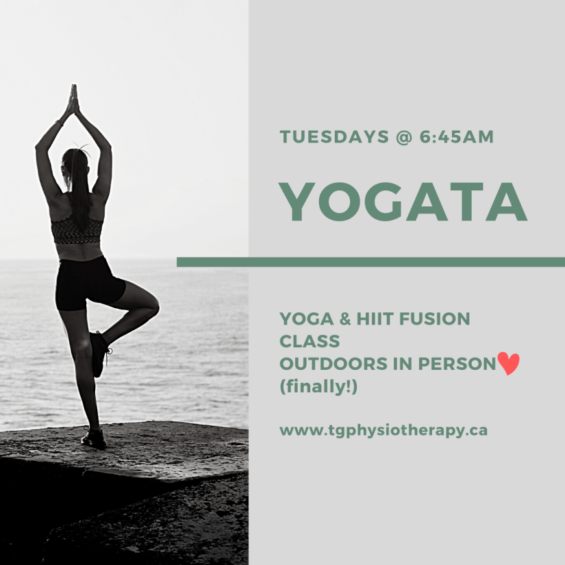 Join us for a sweaty Yogata Class! This is the perfect blend of yoga and high intensity interval training to get your body moving in a safe and effective way. We start with a power yoga warm up, followed by tabata, then a hatha/yin style cool down to stretch all the big muscle groups. And of course, sweet sweet savanana to finish off! *Covered under physiotherapy if you have extended health insurance.